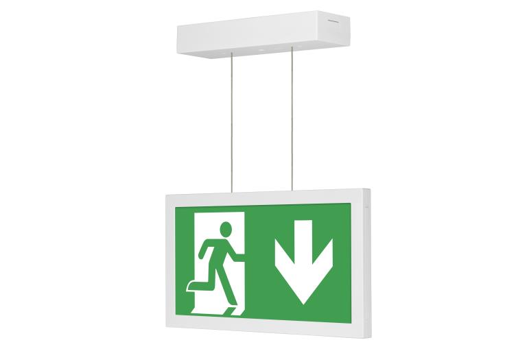 Emergency exit sign Supplied with universal sticker kit.